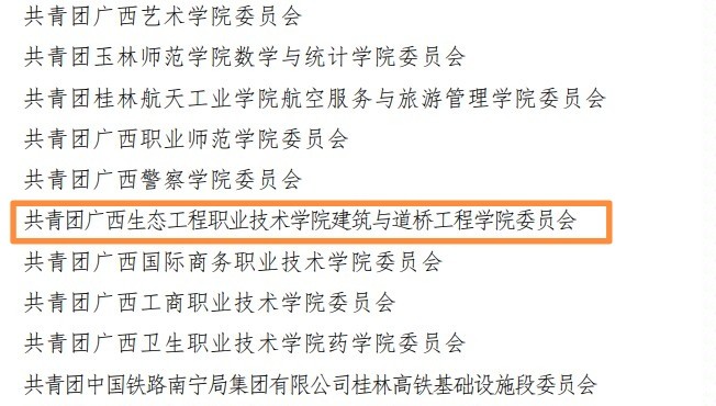 近日,共青团广西区委、广西青年联合会公布了2022年度“广西五四红旗团委”获奖单位,我校建筑与道桥工程学院团委荣获2022年度“广西五四红旗团委”荣誉称号,这是我校近年来第三次获此殊荣。