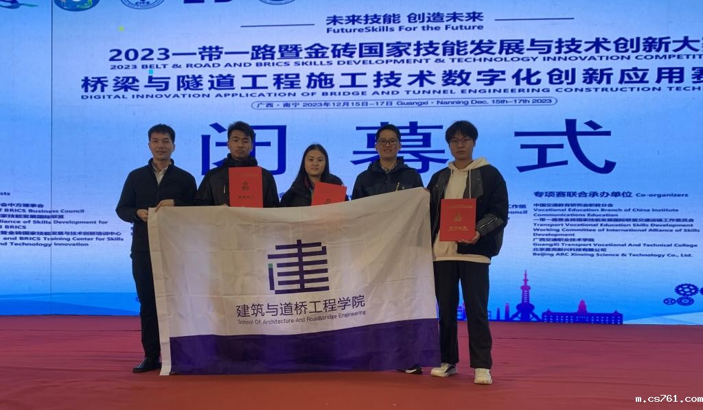 12月15日-17日,我院师生团队前往广西交通职业技术学院参加2023一带一路暨金砖国家技能发展与技术创新大赛桥梁与隧道工程施工技术数字化创新应用赛项。此次比赛共有24个省、市、区62所院校共99个高职组参赛队参加,经过紧张激烈的角逐,我院参赛队荣获三等奖一项,参赛学生:道桥221班陈兴源、道桥222班农佳铭、粟璟鸿,指导老师:曾大艇、梁永才。
