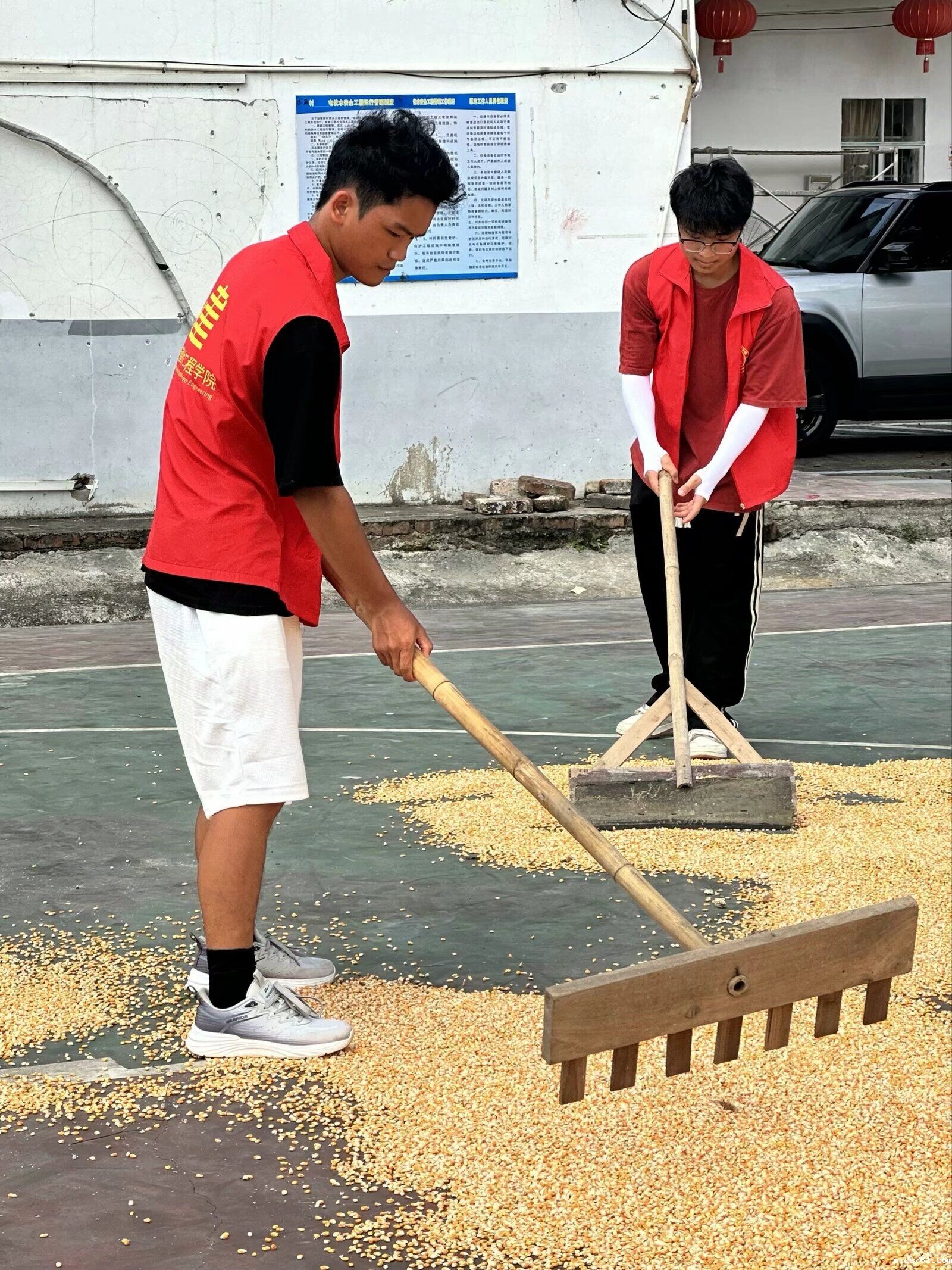 为进一步美化人居环境,建设美丽宜居的文明乡村。实践团对当地多户村民进行实地走访和问卷调查,深入了解古灵村居民的生态环境保护意识,并对村内道路两侧垃圾进行清理,引导村民爱护环境、保护环境,以实际行动让乡村环境更加美好。同时,积极开展志愿服务,热情服务当地居民农活劳作,“一二三,抬……”大学生们团结协作,帮忙搬运、摊晒稻谷,体验村民农忙生活,为群众办实事,做好事,感受丰收的喜悦,看着满地金黄的稻谷“成果”,切身体会到了“谁知盘中餐,粒粒皆辛苦”。
