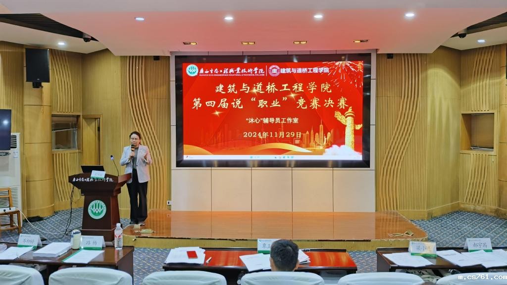 11月29日,建筑与道桥工程学院在学校青山报告厅举行第四届说“职业”竞赛决赛,本次竞赛由“沐心”辅导员工作室承办。学院党总支书记、院长肖万娟,专业负责人覃玉格,《职业发展与就业指导》任课教师路杨、梁小连、岑柳婷、郝宇茜担任比赛评委。