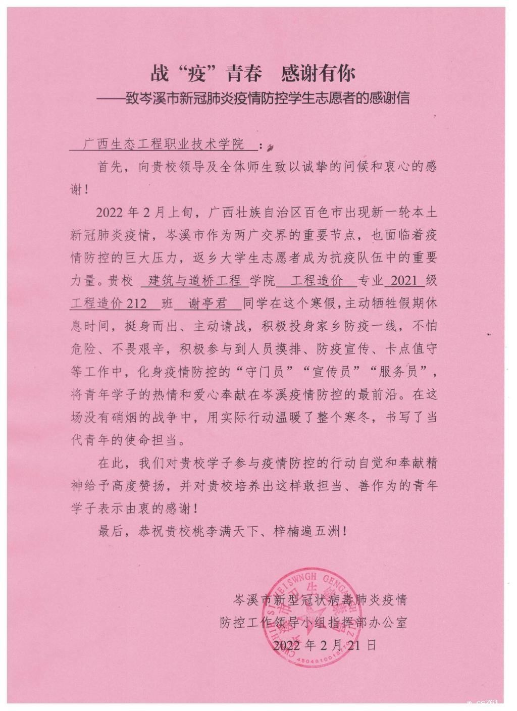 2022年寒假期间,广西百色疫情几乎刷爆了广西人的朋友圈,引起了不小的社会关注。在我们默默为百色加油助力的时候,建工学院在百色的学子早已走上抗疫一线,担当起家乡守护者的角色;同时,在其他地区的建工学子们,也都积极参与了助力家乡疫情防控的志愿者服务。